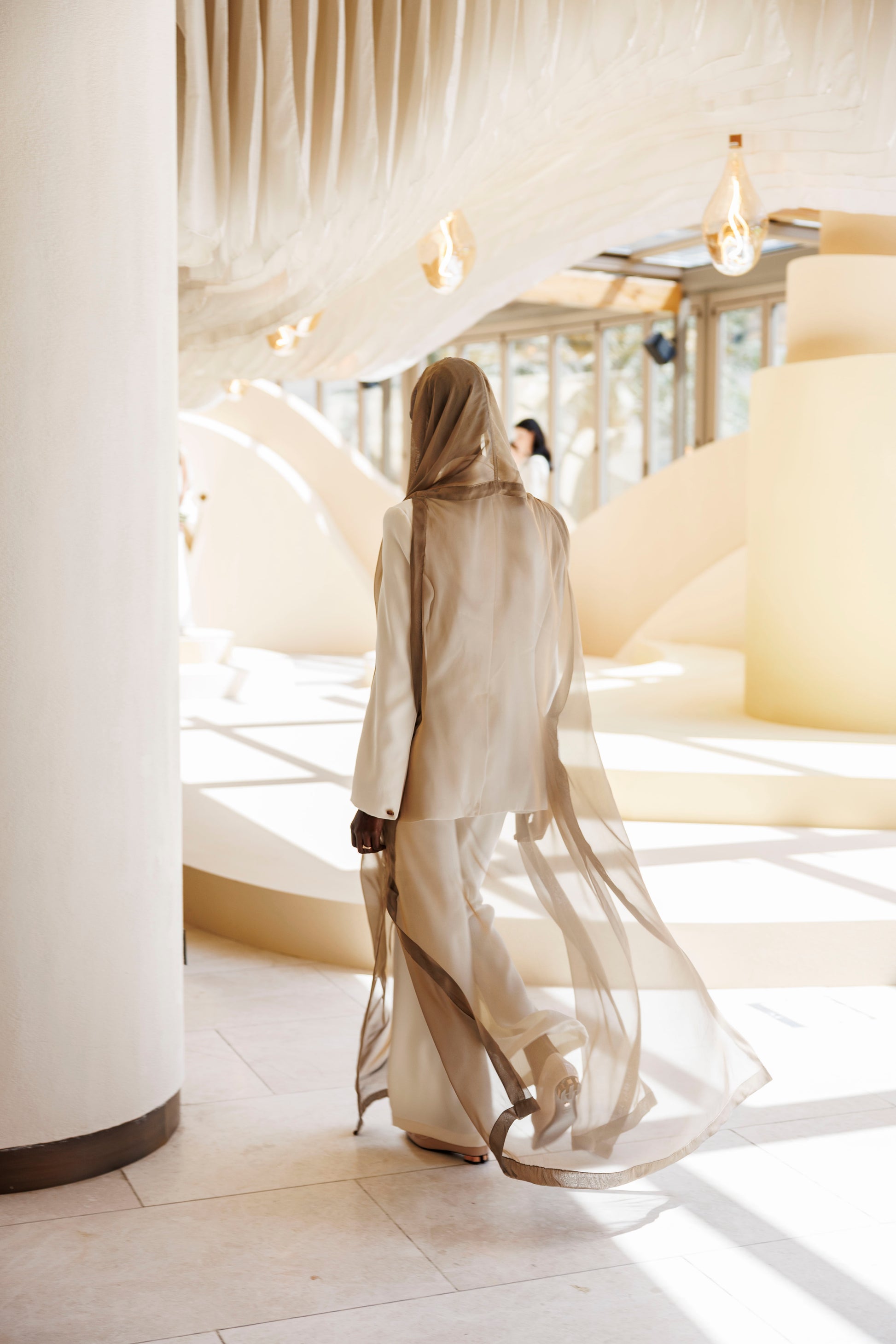 This look embodies the harmony between softness and strength — a poetic reflection of desert light and motion.