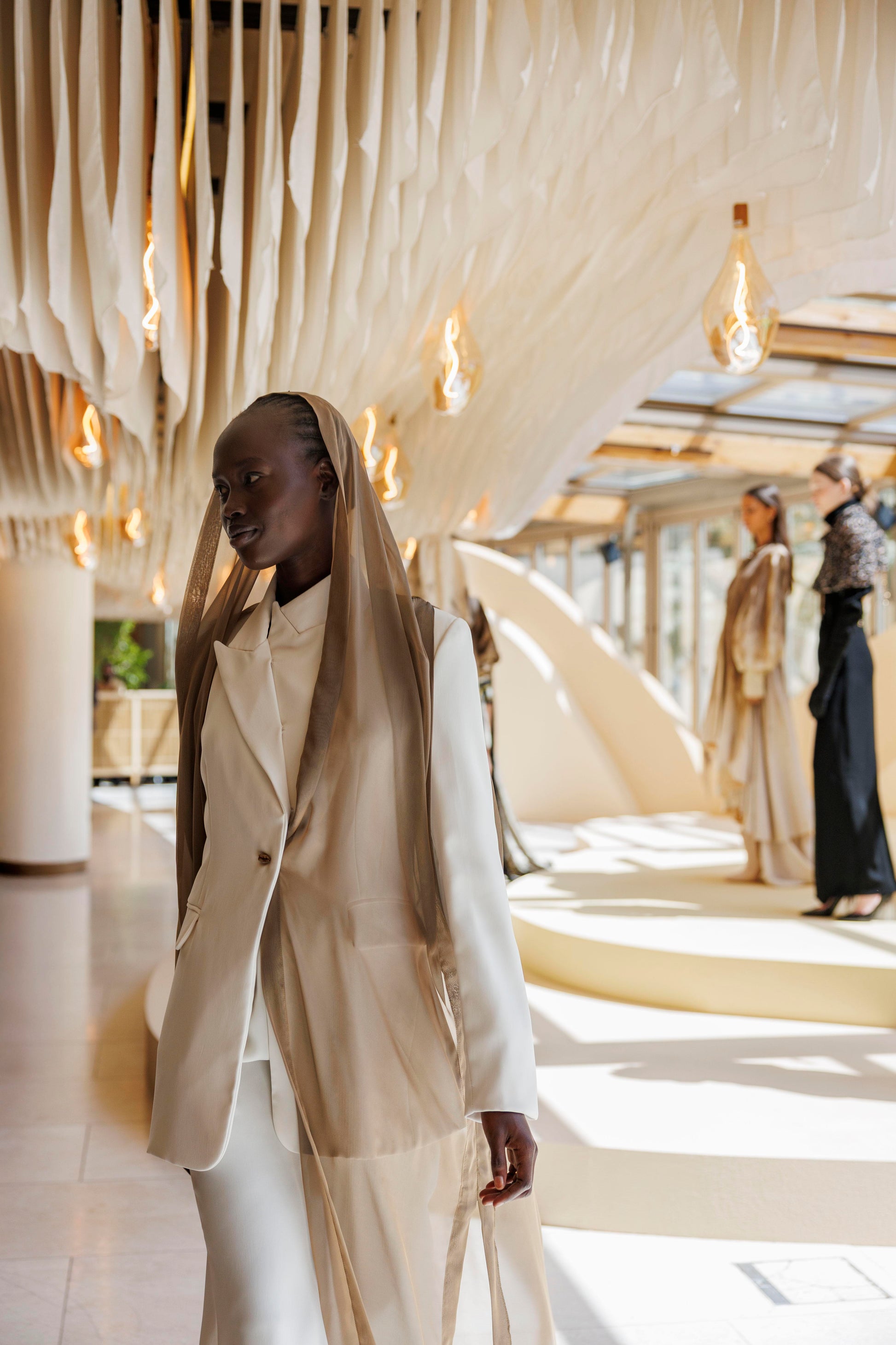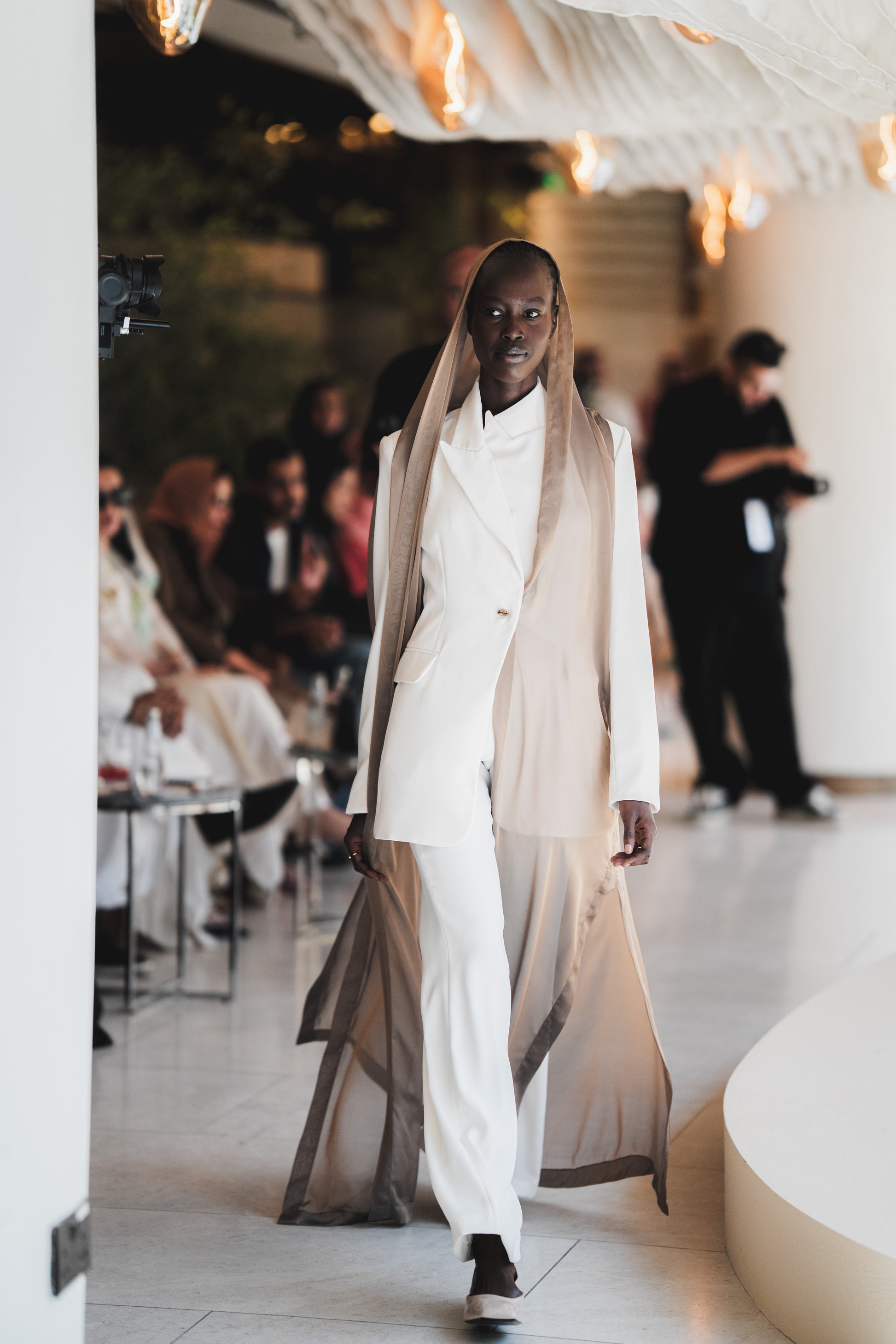 An interpretation of traditional modesty through contemporary tailoring — a look that speaks the language of confidence without words.