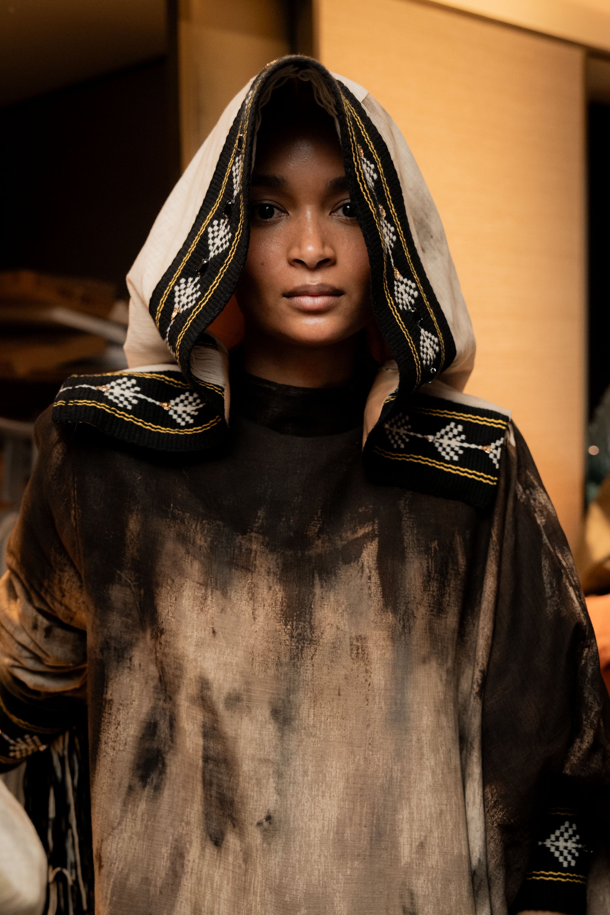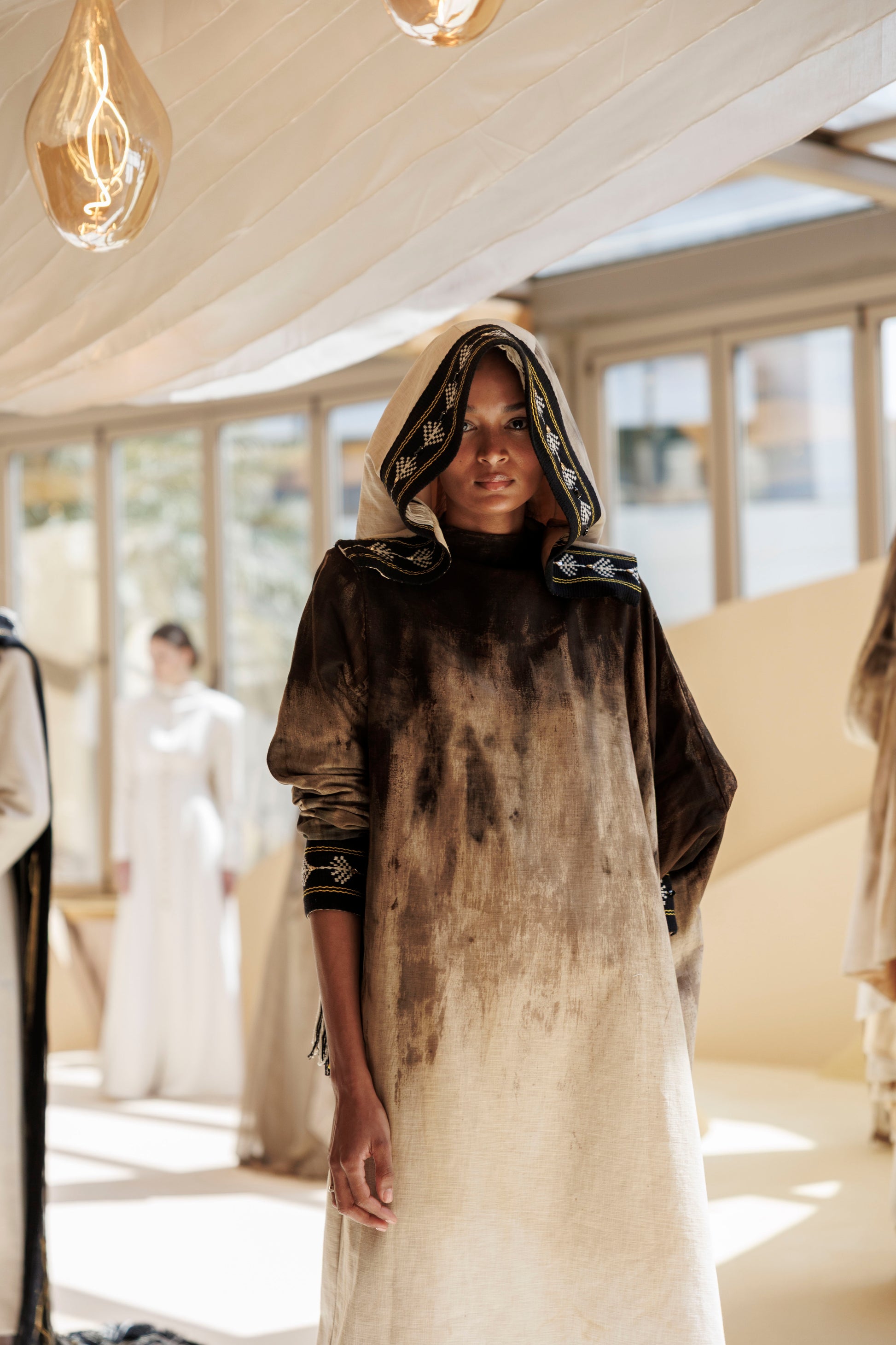 • Sadu-inspired cuffs: Handwoven panels in earthy tones, merging tradition with modern refinement.