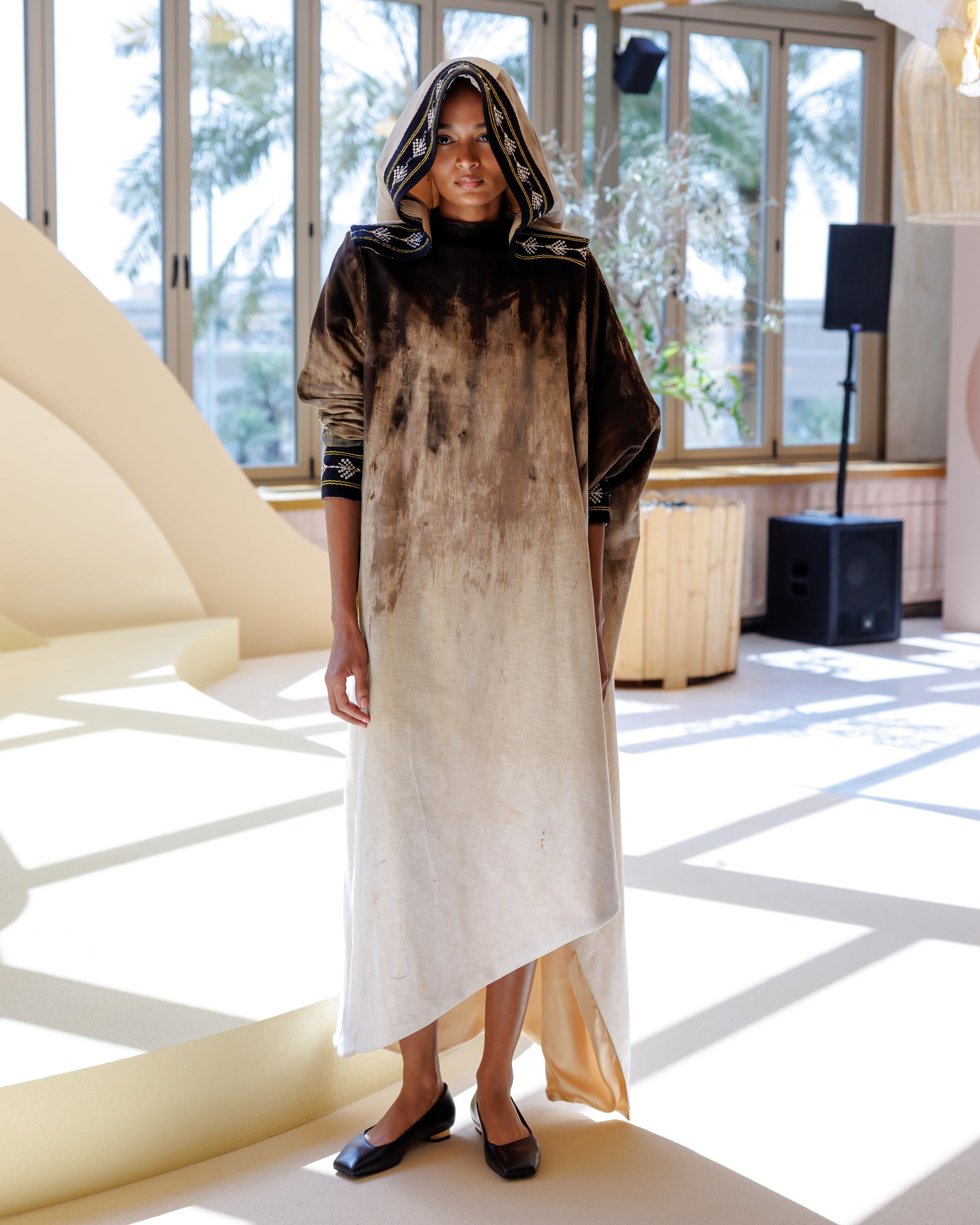 Crafted from 100% natural cotton, hand-dyed with henna to achieve an ombré effect that flows from deep warmth to serene softness.